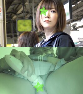 [Pcolle-828705db1862ec5c9e]【電車痴かん】顔出し制服JK★ミニスカセーラーのショートカットJKに極太ディルドと電マのW責め★車内で中出し&トイレで顔射の2連に出ているAV女優名は?